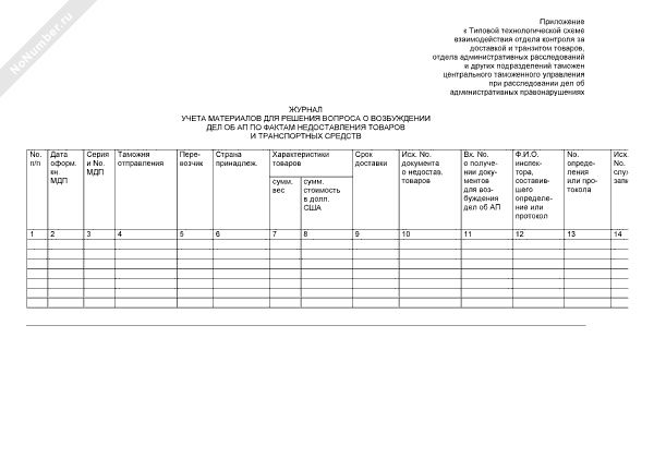 - 1313Журнал учета материалов для решения вопроса о возбуждении дел об административных правонарушениях по фактам недоставления товаров и транспортных средств