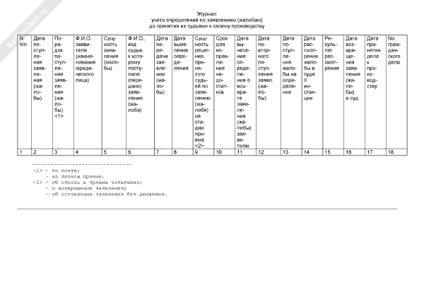 - 1401Журнал учета определений по заявлениям (жалобам) до принятия их судьями к своему производству. Форма № 6.1