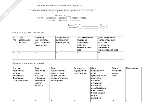 - 1413Журнал учета осужденных женщин, которым судом отсрочено отбывание наказания