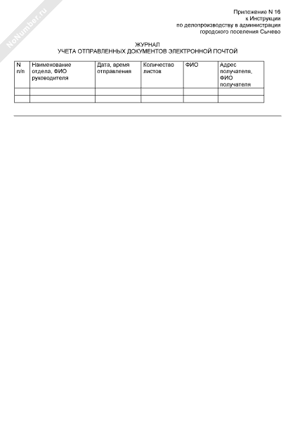 - 1417Журнал учета отправленных документов электронной почтой администрацией городского поселения Сычево Волоколамского муниципального района Московской области