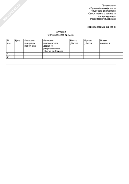 - 1668Журнал учета рабочего времени работников Следственного комитета при прокуратуре Российской Федерации