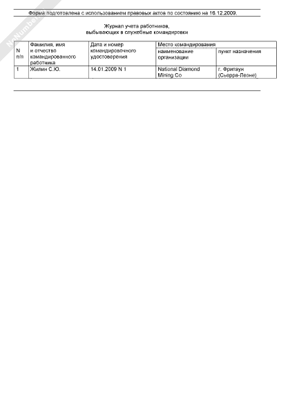 - 1676Журнал учета работников, выбывающих в служебные командировки