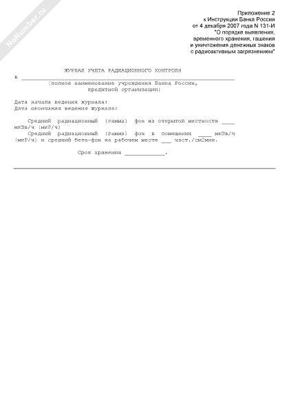 - 1666Журнал учета радиационного контроля результатов измерения радиоактивного излучения денежных знаков