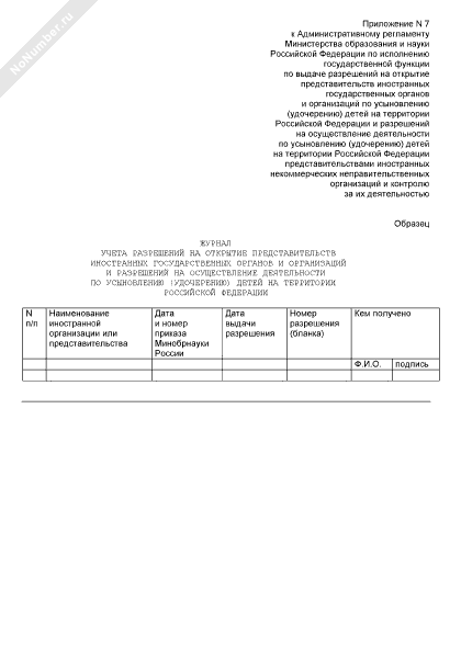 - 1669Журнал учета разрешений на открытие представительств иностранных государственных органов и организаций и разрешений на осуществление деятельности по усыновлению (удочерению) детей на территории Российской Федерации
