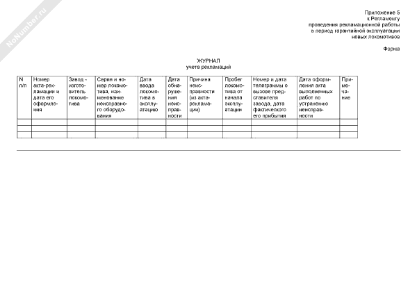 - 1680Журнал учета рекламаций на неисправную часть локомотива в период его гарантийной эксплуатации