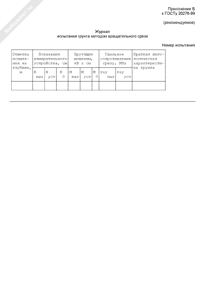 Формы первой и последующих страниц журналов полевых испытаний грунтов (рекомендуемые). Журнал испытания грунта методом вращательного среза