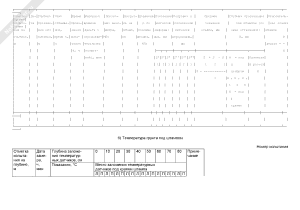 Формы первой и последующих страниц журналов полевых испытаний грунтов (рекомендуемые). Журнал испытания мерзлого грунта горячим штампом
