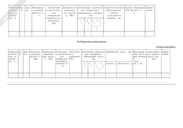 Формы первой и последующих страниц журналов полевых испытаний грунтов (рекомендуемые). Журнал испытания грунта методом кольцевого среза