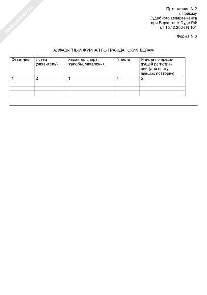 Алфавитный журнал по гражданским делам (форма № 6)