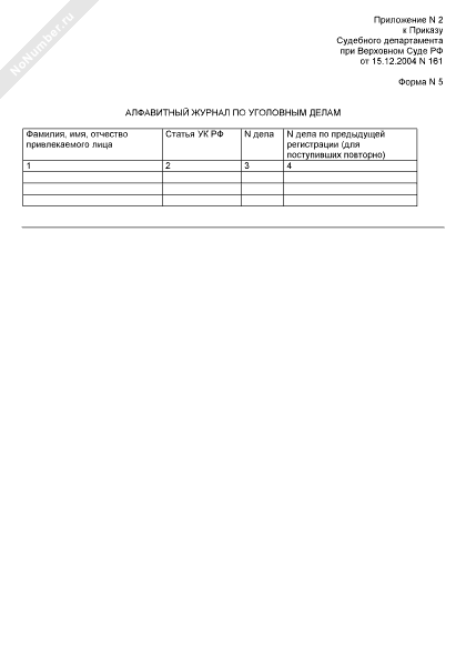 Алфавитный журнал по уголовным делам (форма № 5)