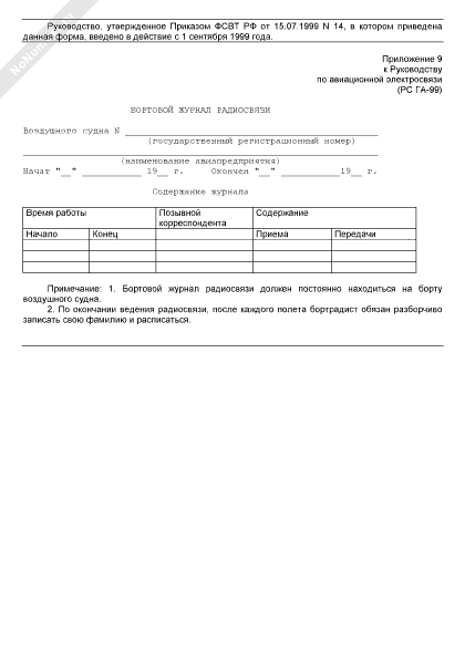 Бортовой журнал радиосвязи воздушного судна авиапредприятия