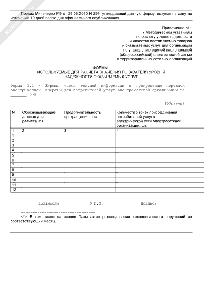 - Источник– Приказ Минэнерго РФ от 29.06.2010 № 296