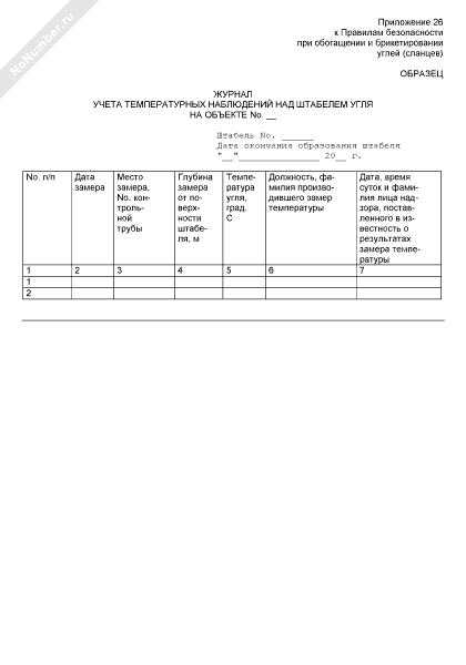 Журнал учета температурных наблюдений над штабелем угля