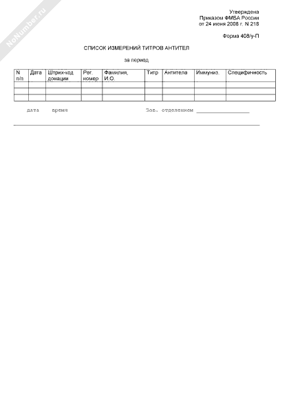 - Номер типовой формы 408/У-П
