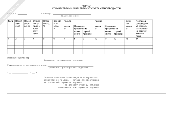 Журнал количественно-качественного учета хлебопродуктов. Отраслевая форма № ЗПП-36 (рекомендуемый образец заполнения)