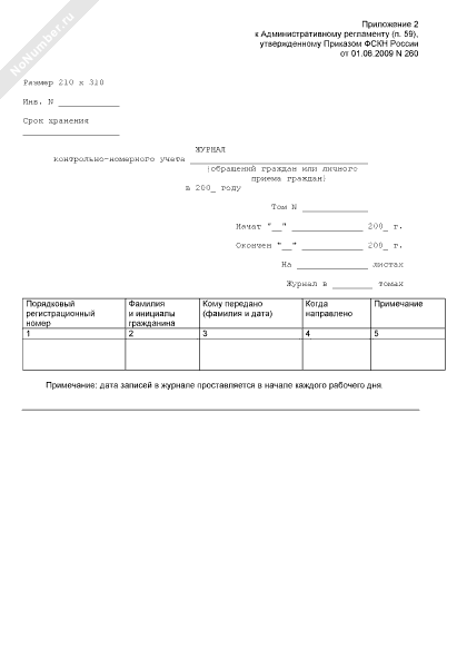Журнал контрольно-номерного учета обращений граждан или личного приема граждан Федеральной службой Российской Федерации по контролю за оборотом наркотиков (рекомендуемый образец заполнения)