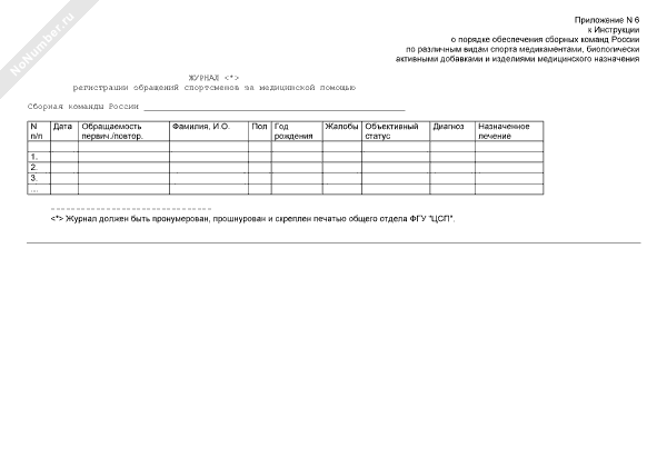 Журнал регистрации обращений спортсменов за медицинской помощью