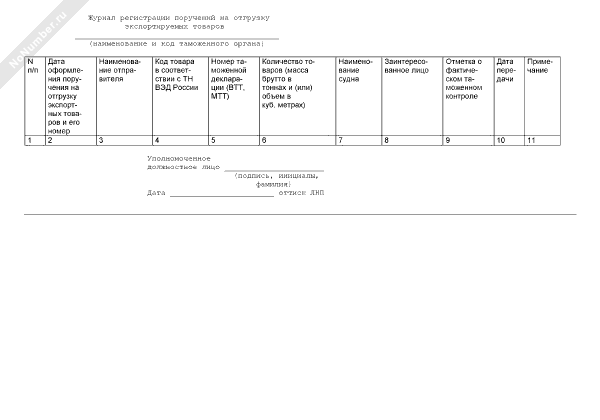 Журнал регистрации поручений на отгрузку экспортируемых товаров