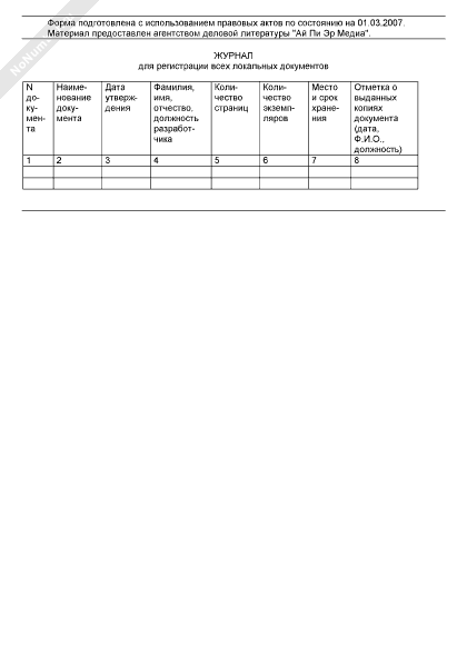 Журнал для регистрации всех локальных документов организации