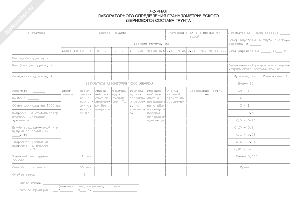 Журнал лабораторного определения гранулометрического (зернового) состава грунта (рекомендуемая форма)