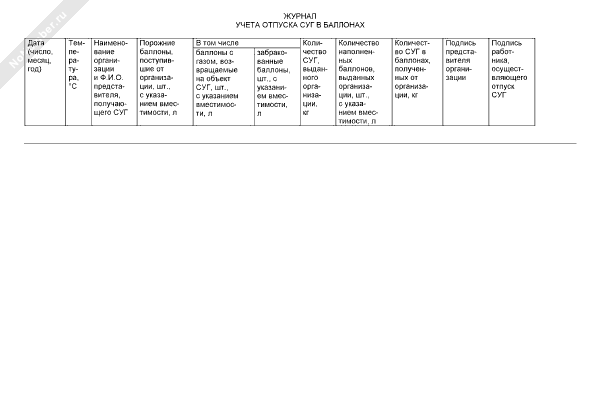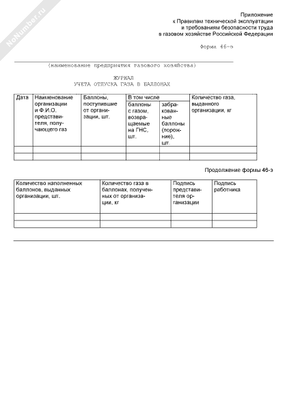 Журнал учета отпуска газа в баллонах. Форма № 46-Э