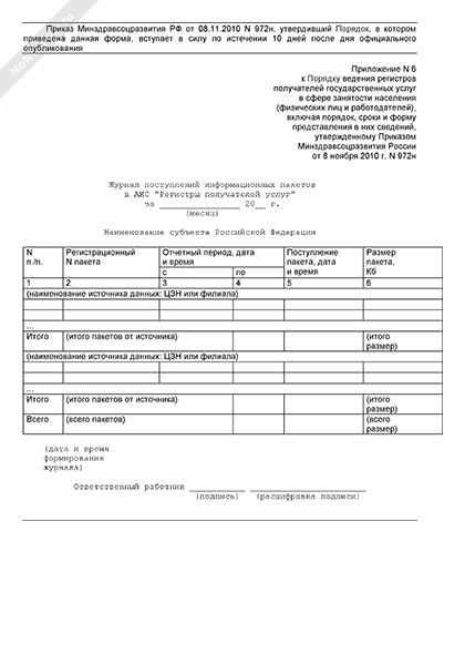 - Источник– Приказ Минздравсоцразвития РФ от 08.11.2010 № 972н