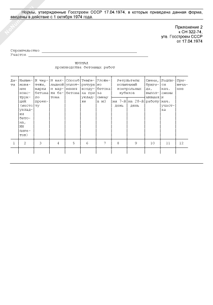 Журнал производства бетонных работ
