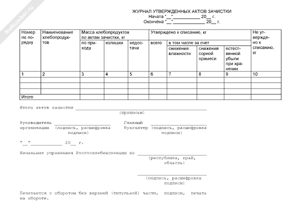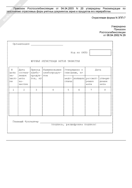 Журнал регистрации актов зачистки. Отраслевая форма № ЗПП-7