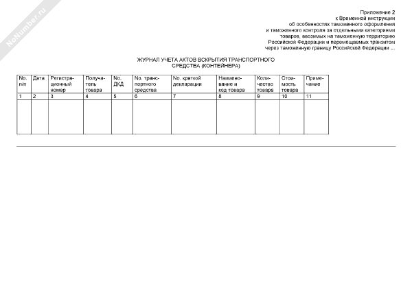 Журнал учета актов вскрытия транспортного средства (контейнера)