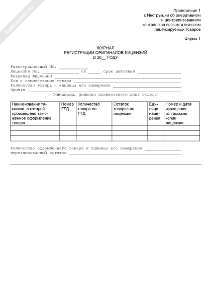 Журнал регистрации оригиналов лицензий (форма № 1)