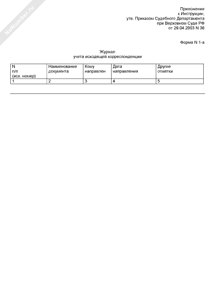 Журнал учета исходящей корреспонденции. Форма № 1-а