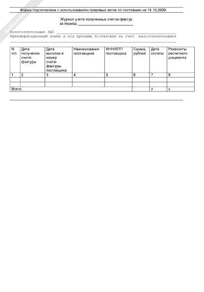 Журнал регистрации счетов поступления товаров по группам. Форма № А-1.8