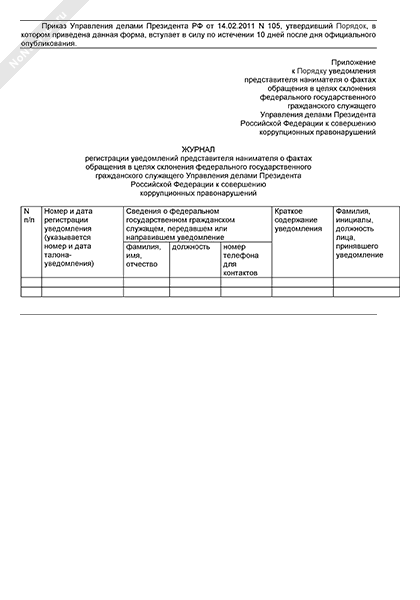 - Источник– Приказ Управления делами Президента РФ от 14.02.2011 № 105
