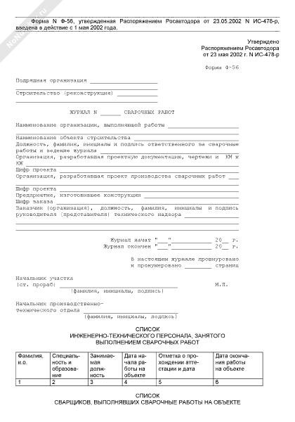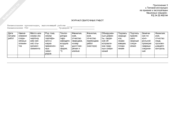 Журнал сварочных работ на градирне (рекомендуемый образец заполнения)