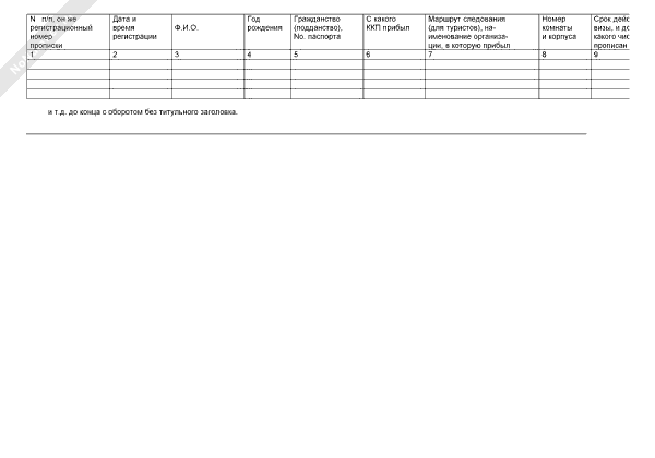 Журнал регистрации иностранных граждан в гостинице. Форма № 2-Г