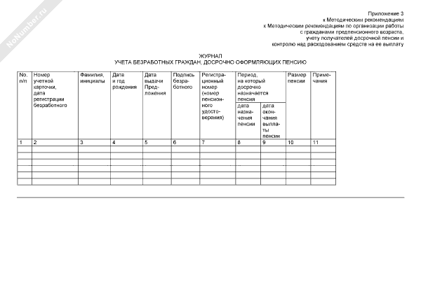Журнал учета безработных граждан, досрочно оформляющих пенсию (рекомендуемый образец заполнения)