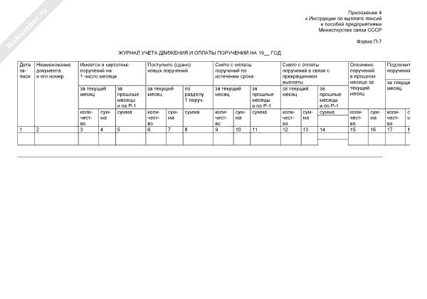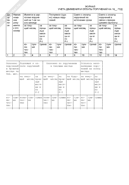 Журнал учета движения и оплаты поручений. Форма № П-7