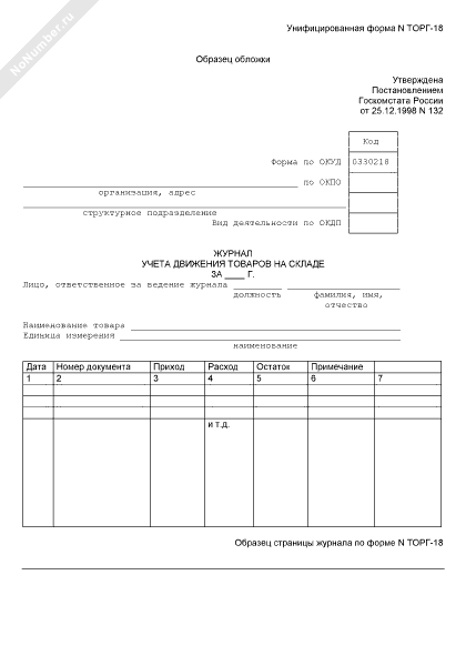 Журнал учета движения товаров на складе. Унифицированная форма № ТОРГ-18