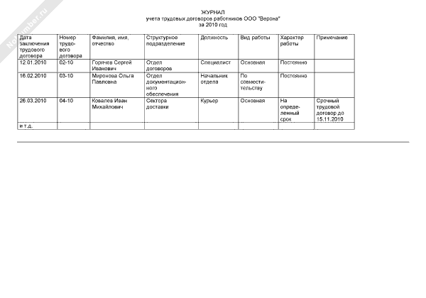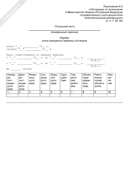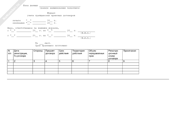 Журнал учета гражданских правовых договоров (рекомендуемый образец заполнения)