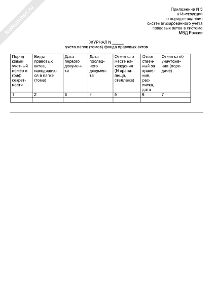 Журнал учета папок (томов) фонда правовых актов в системе МВД России
