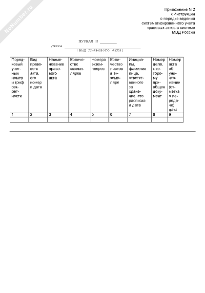 Журнал учета поступающих в фонд правовых актов в системе МВД России