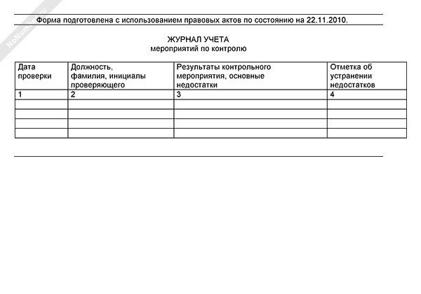 Журнал учета мероприятий по контролю
