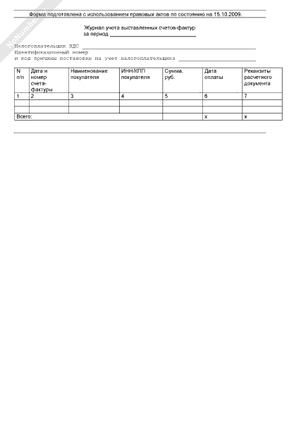 Журнал учета полученных счетов-фактур (рекомендуемый образец заполнения)
