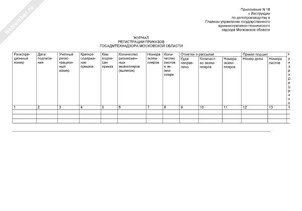 Журнал регистрации приказов Госадмтехнадзора Московской области