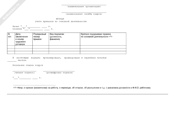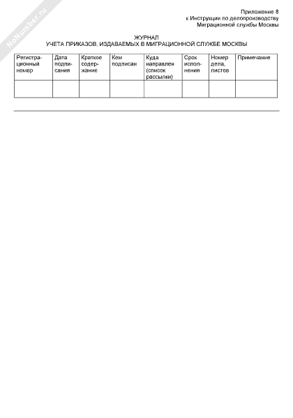 Журнал учета приказов, издаваемых в Миграционной службе г. Москвы (рекомендуемый образец заполнения)