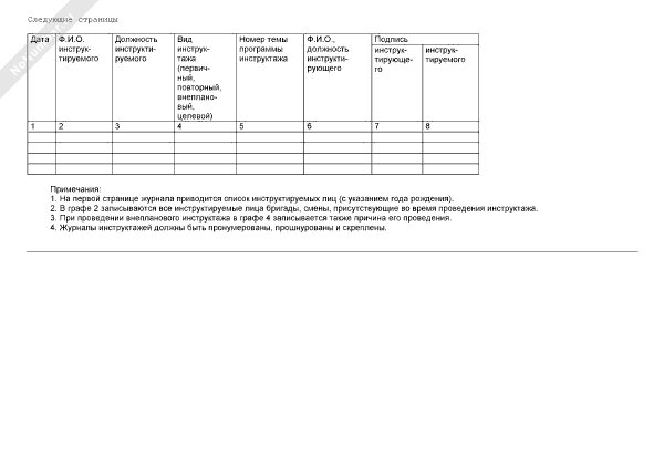 Журнал регистрации инструктажей на рабочем месте (следующие страницы)