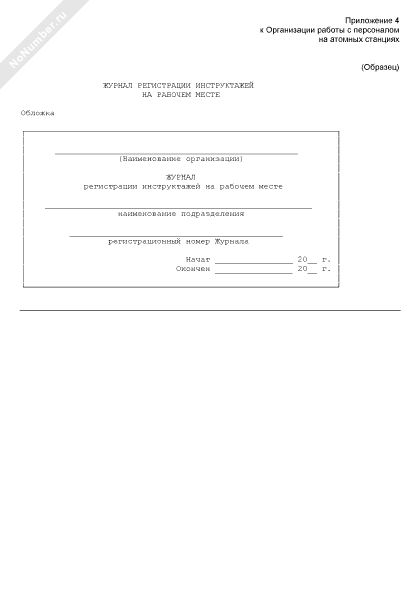 Журнал регистрации инструктажей на рабочем месте (обложка)