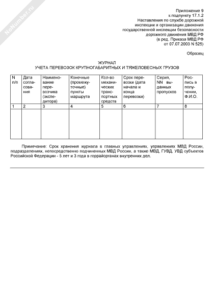 Журнал учета перевозок крупногабаритных и тяжеловесных грузов