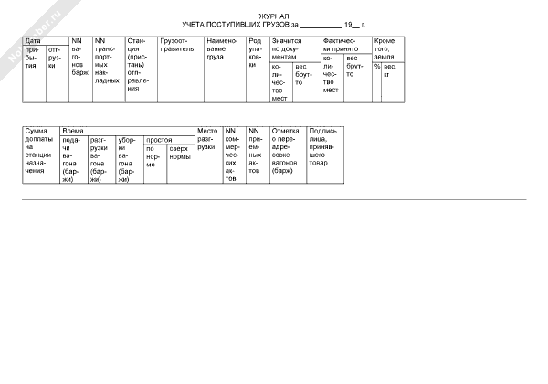 Журнал учета поступающих грузов. Специализированная форма № 15-ОТ
