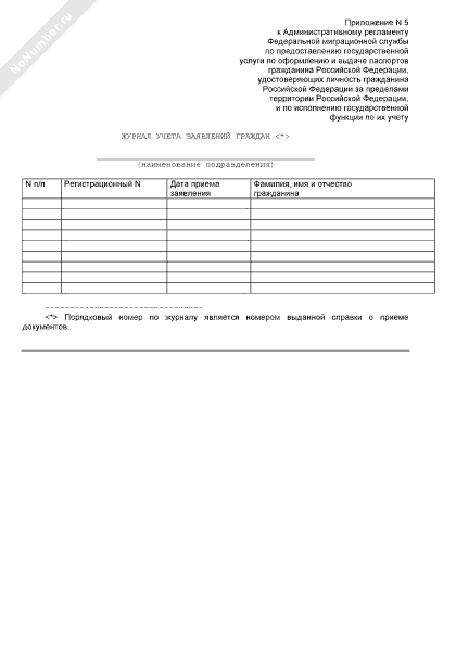 Журнал учета заявлений граждан в Федеральной миграционной службе